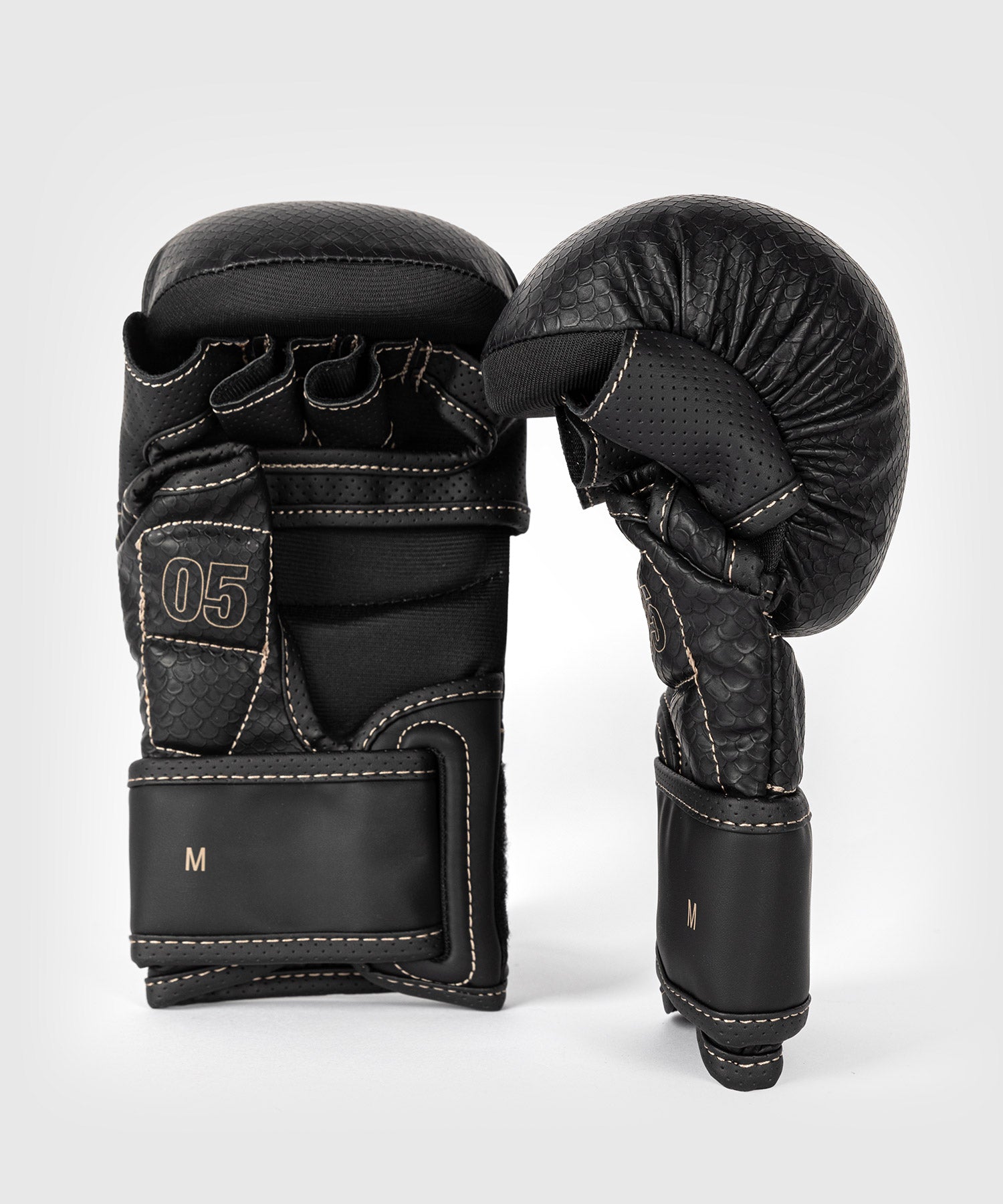 Beige stitching follows the lines of the glove’s anatomical construction for a subtle contrast effect. Meanwhile textured scales spread across the surface - a reminder to strike hard and fast with Venum.